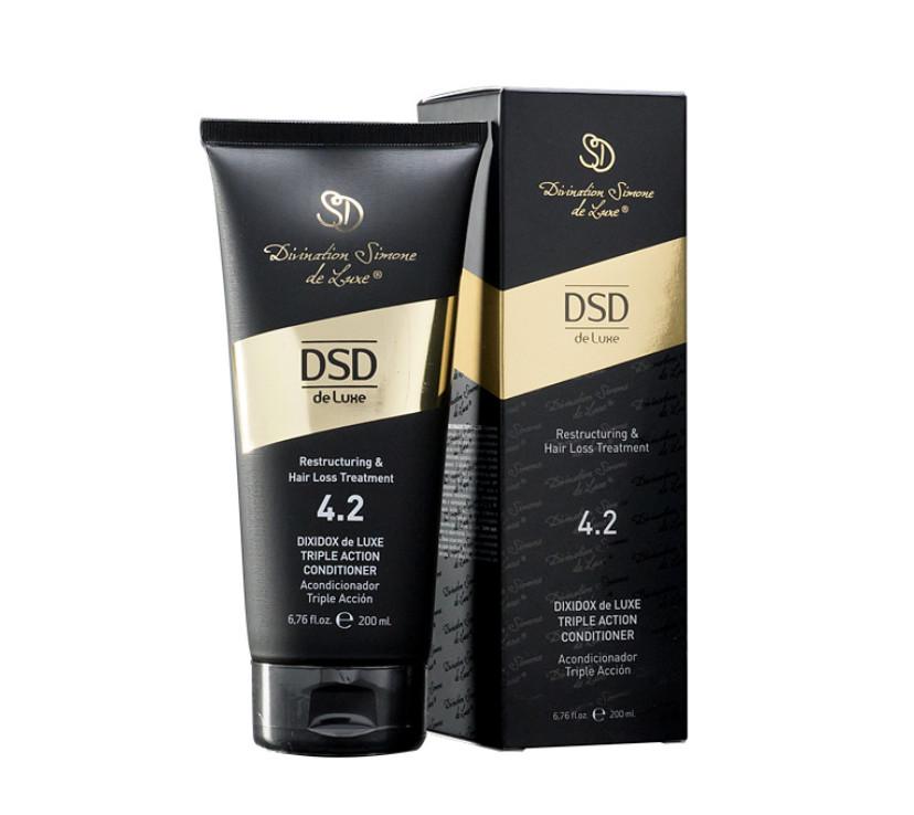 Kondicionér s trojím účinkem současně zlepšuje strukturu vlasů, stimuluje jejich růst a příznivě působí na pokožku hlavy. Přípravek obsahuje bambucké máslo, hydrolizovaný kolagen, keratin, aloe vera a pantenol ve vysoké koncentraci jakožto složky, které zlepšují a a obnovují strukturu vlasů. Jako stimulátor růsti vlasů se v kondicionéru používá bílkovino-minerální komplex, nasycený biodostupnými sloučeninami zinku, železa, křemíku a hořčíku.Multivitaminový komplex obsahuje antioxidanty a stimulátory růstu vlasů, vitaminy A, C, E, PP, pantenol, riboflavin, biotin, inositol, tiamin, pyridoxin, nikotinamid. balzám obsahuje též dobře známý přírodní antiandrogen - výtažek ze serenoe plazivé.